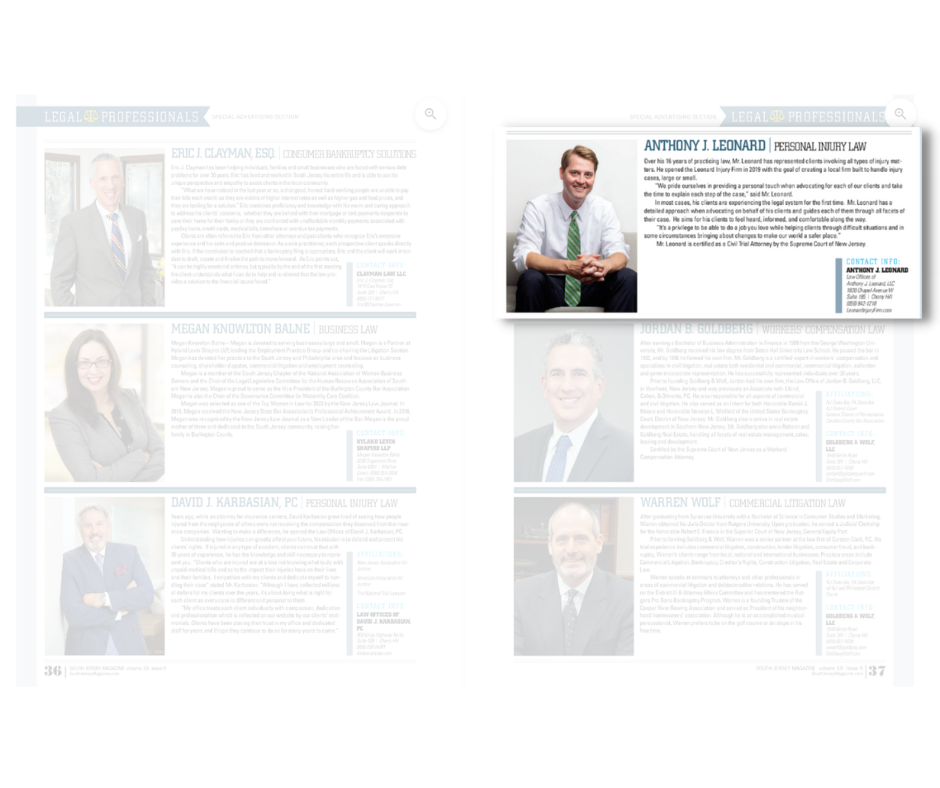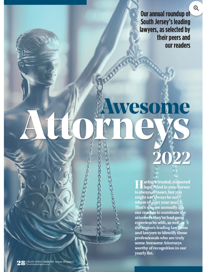 We are pleased to announce that Anthony Leonard has been named one of South Jersey’s Awesome Attorneys by South Jersey Magazine. Every year, South Jersey Magazine asks readers to recommend legal professionals they have had positive experiences with. In addition to votes, nominees were vetted using public sources of information to verify peer recognition, professional achievements, experience, honorable accolades and more.